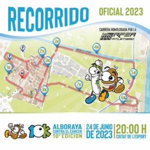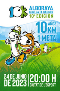 La población de Alboraya acogerá como es habitual la prueba solidaria por excelencia del periodo estival. Este año se celebra la decima edición de la carrera solidaria 10K ALBORAYA CONTRA EL CANCER que se podrá disfrutar el día 24 de Junio a las 20h por el municipio de L’horta Nord.